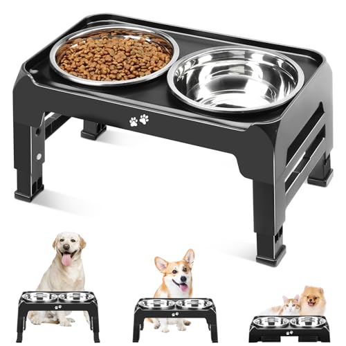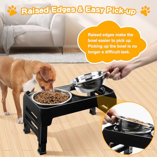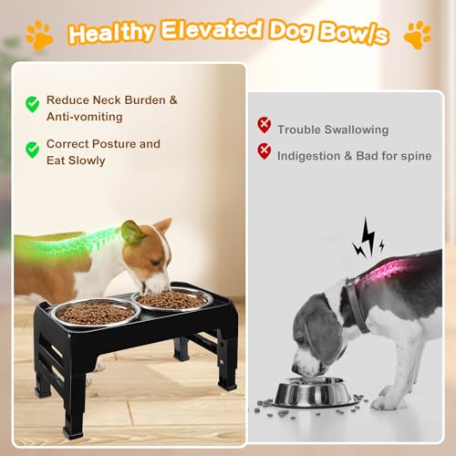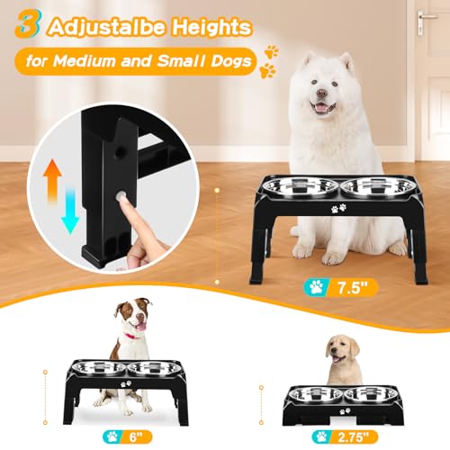 Elevated Dog Bowls 3 Height Adjustable Raised Dog Bowl Stand with 2 Thick Stainless Steel Dog Food Bowls Non-Slip Dog Feeder for Small Medium Dogs Adjusts to 2.75″, 6″, 7.5″, Black