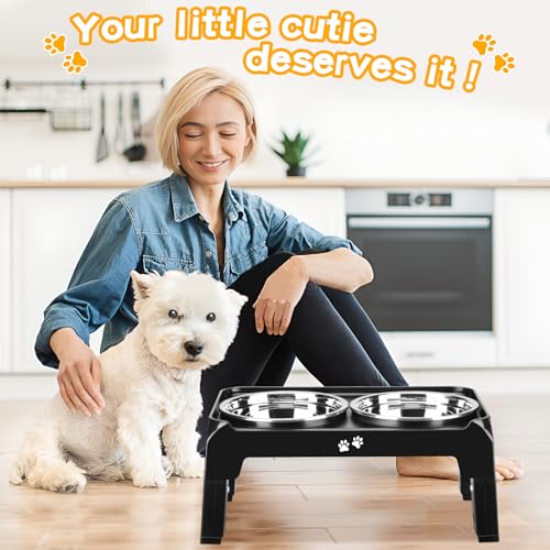 ????Dual 25 oz Thickened Stainless Steel Bowls with Larger Capacity: Welcome to compare! We’ve upgraded our stainless steel bowls to be thicker and larger than others, ensuring the long-lasting durability and a perfect fit for small-sized dog. Additionally, our bowl holder is cleverly crafted with raised edges for effortless pick-up, rather than reaching underneath the bowl and pushing them up to get them out. The dog bowl is also dishwasher safe and detachable, making cleaning a breeze.